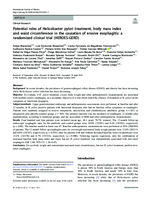 (PDF) Potential roles of Helicobacter pylori treatment, body mass index ...