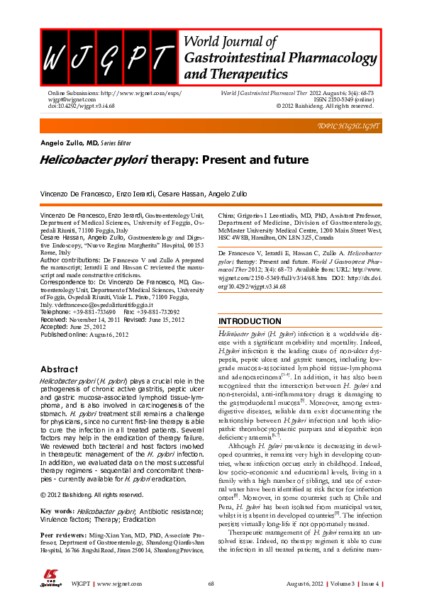 (PDF) Therapeutic advances and future directions in Helicobacter pylori ...