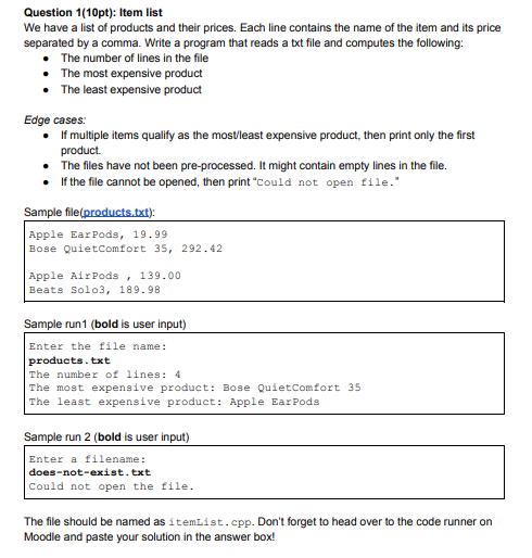 Solved Question 1(10pt): Item list We have a list of | Chegg.com