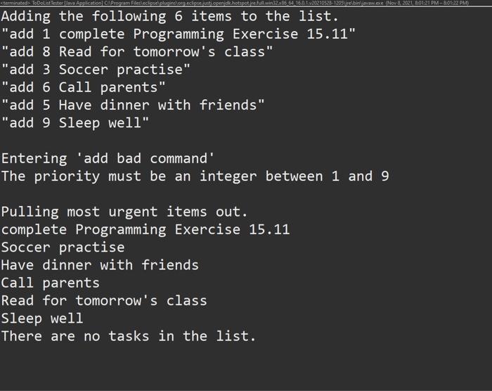 Solved Implement a to do list. Tasks have a priority between | Chegg.com