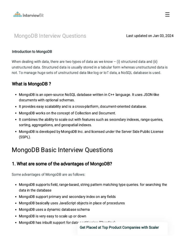 Commonly Asked MongoDB Interview Questions (2023) - Interviewbit | PDF ...