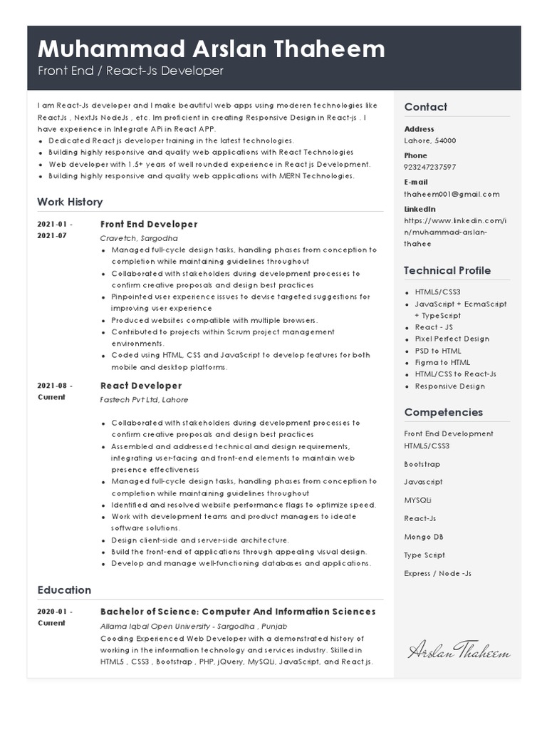 Muhammad Arslan Thaheem - Software Engineer | Full Stack JavaScript ...