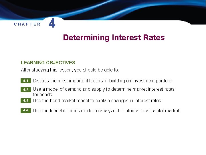 CHAPTER 4 Determining Interest Rates LEARNING OBJECTIVES After