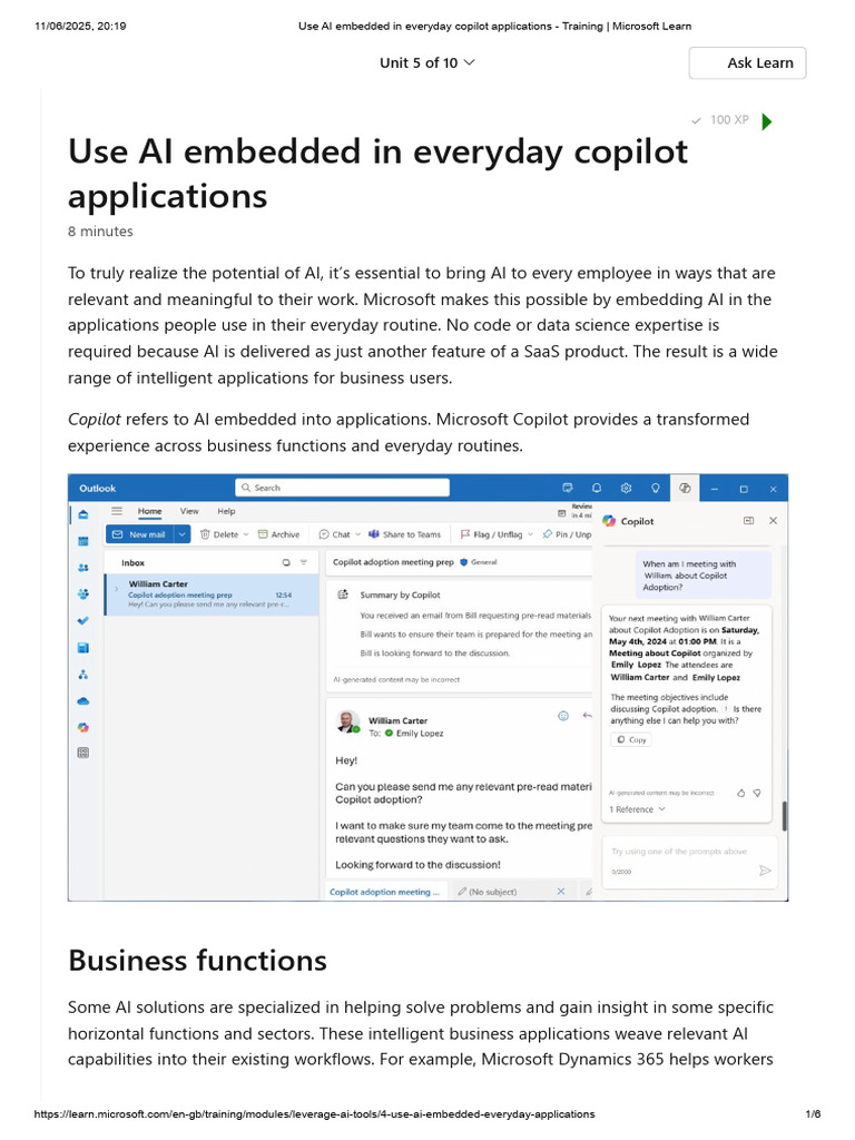 Use AI Embedded in Everyday Copilot Applications - Training - Microsoft ...