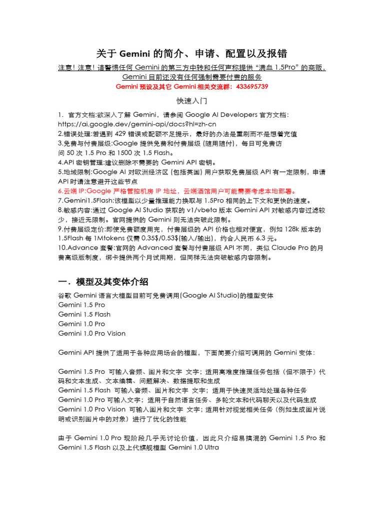 关于Gemini的简介、申请、配置以及报错 | PDF