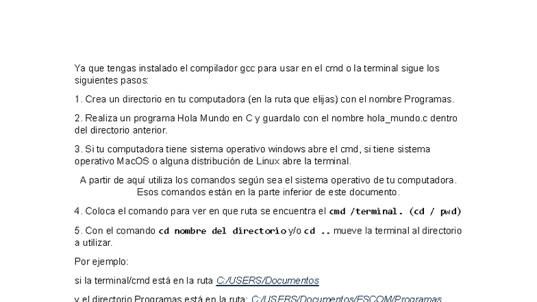 Guía para Compilar un Programa en C usando GCC en CMD/Terminal - Studocu