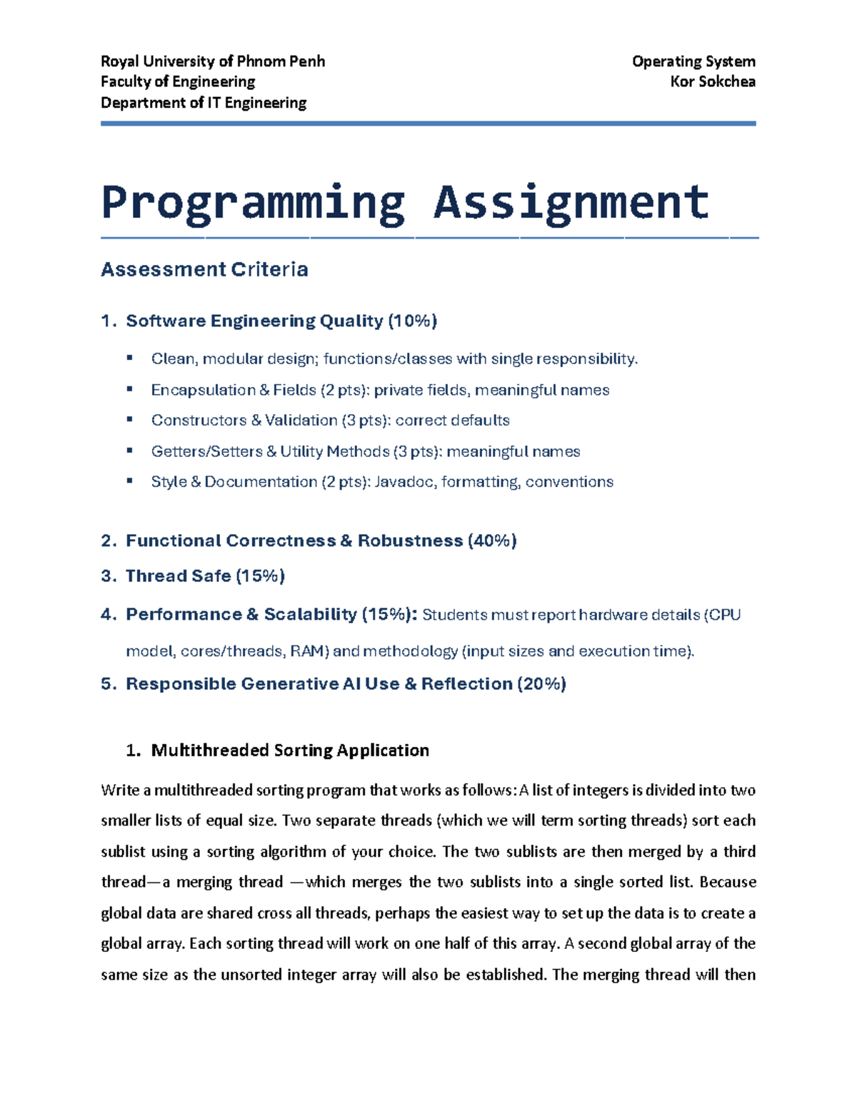 OS Multithreading Sorting Assignment - Programming Task - Studocu