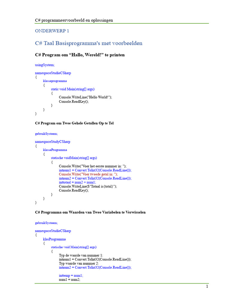 C# Programmeervoorbeelden en Oplossingen | PDF