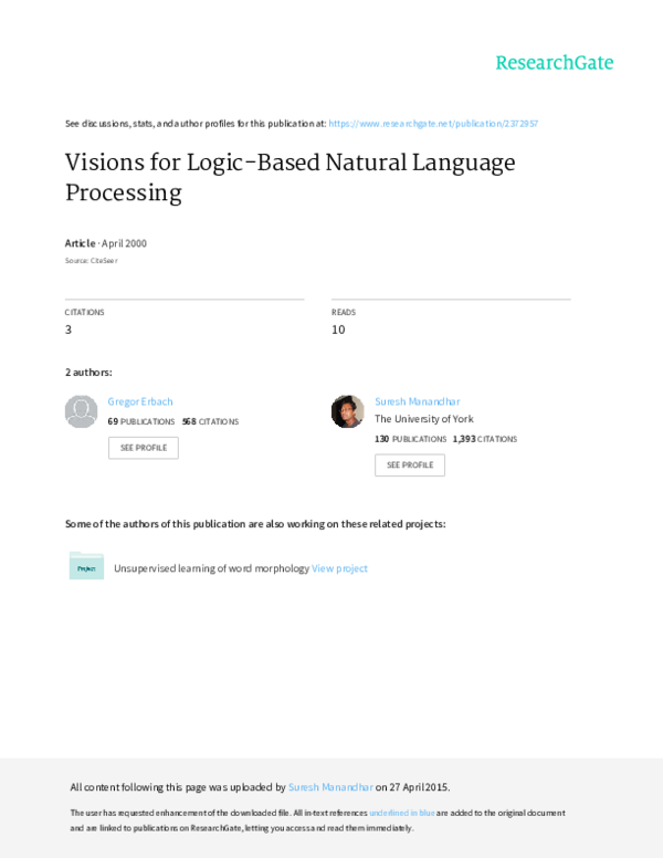 (PDF) Visions for Logic-Based Natural Language Processing