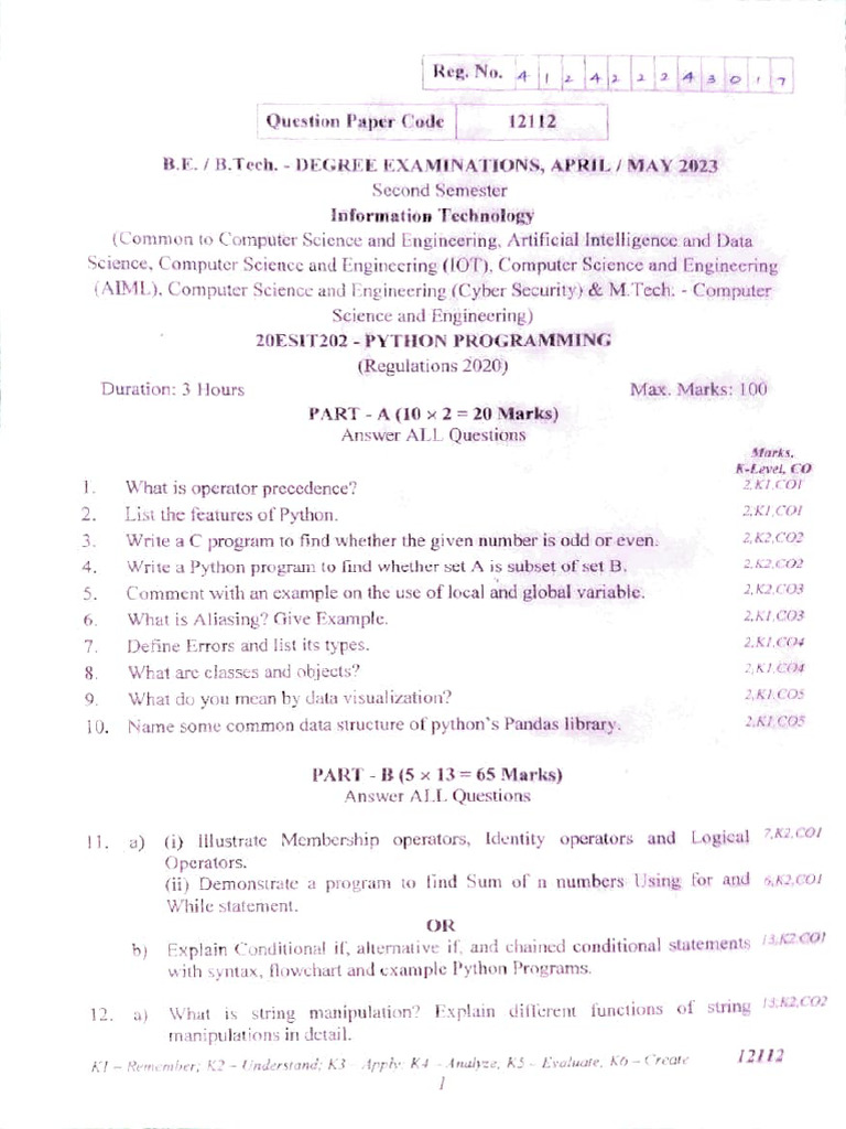 Based on this image's title: “IV Semester Python Model Paper 2 | PDF | Computers | Technology ...”