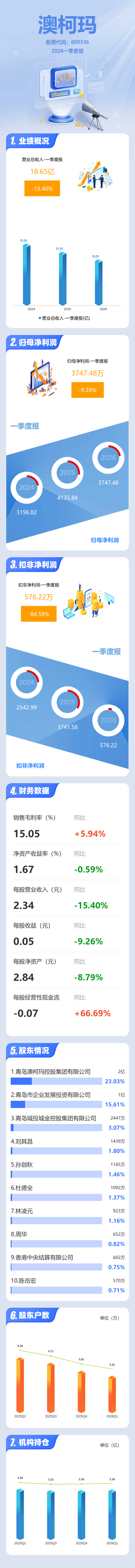 图解澳柯玛一季报:第一季度单季净利润同比下降9.39%