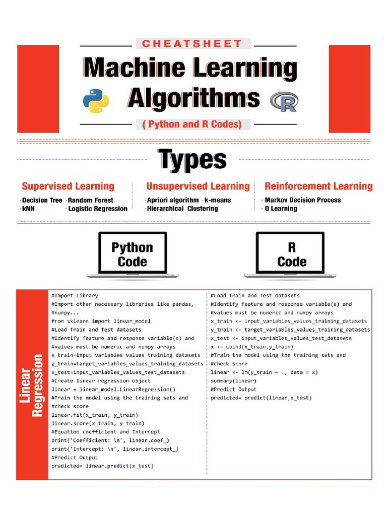Cheatsheet – Python & R codes for common Machine Learning Algorithms ...