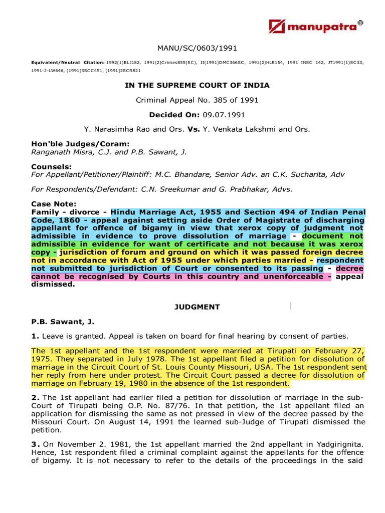 Y. Narasimha Rao and Ors. vs. Y. Venkata Lakshmi and Ors. | PDF ...