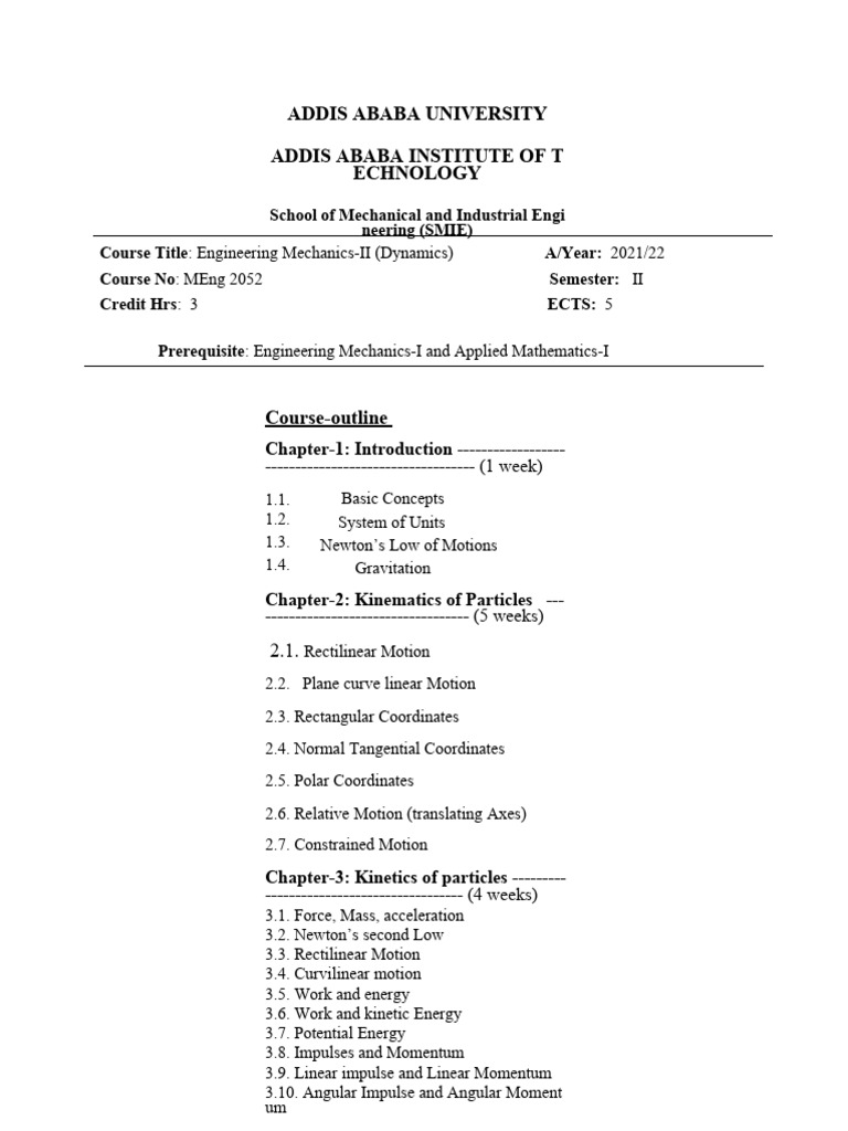 Engineering Mechanics II (Dynamics) Courseoutline | PDF | Rotation ...