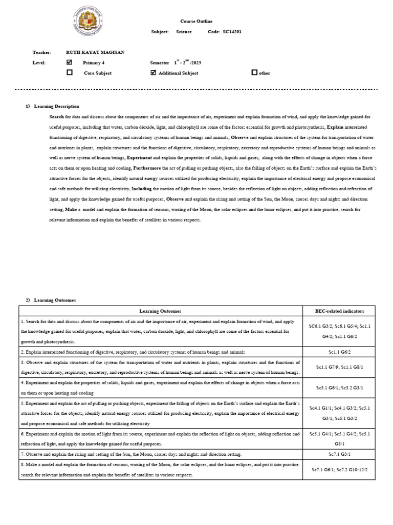 P4 SC14201 2023 Courseoutline | PDF | Earth | Atmosphere Of Earth
