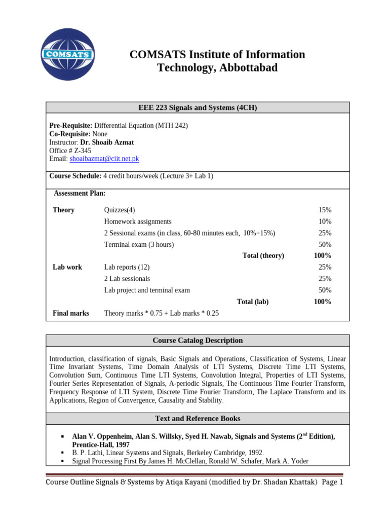 CourseOutline - Signals & System (Done) | PDF | Fourier Transform ...