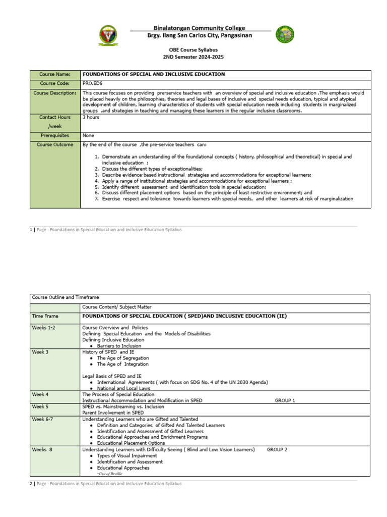 FNDTN OF SPED - IE COURSEOUTLINE. Student Version | PDF | Special ...