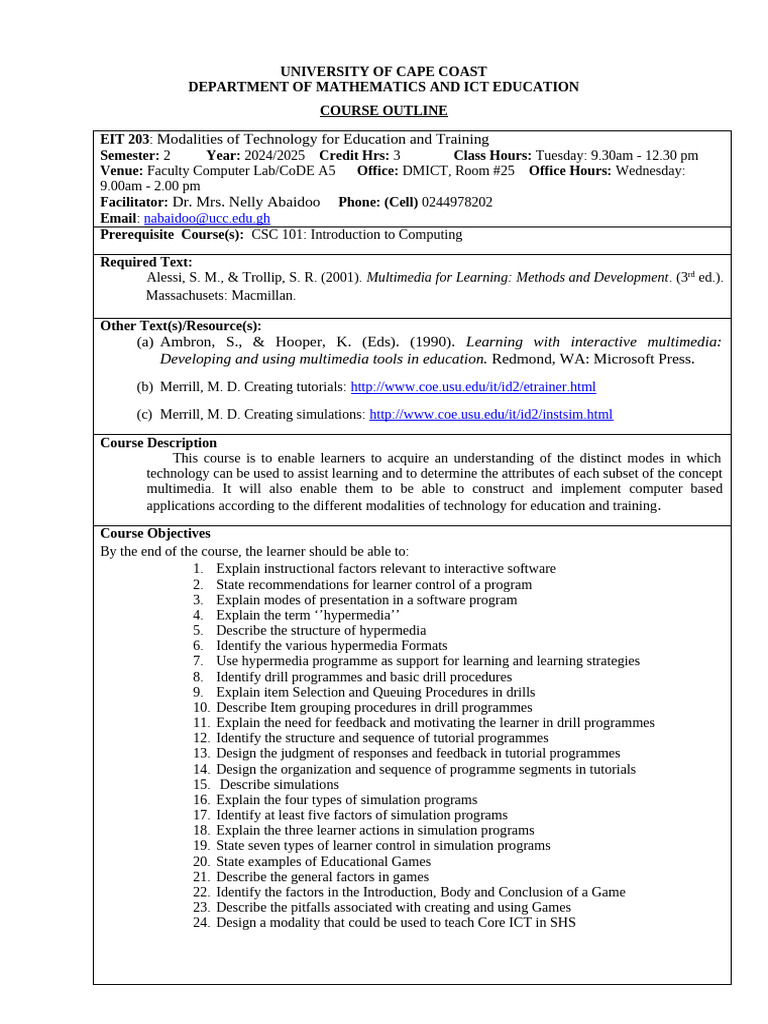 Modalities CourseOutline 2025 | PDF | Multimedia | Learning
