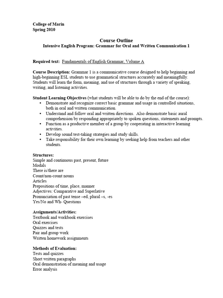IEP Grammar1 CourseOutline | PDF