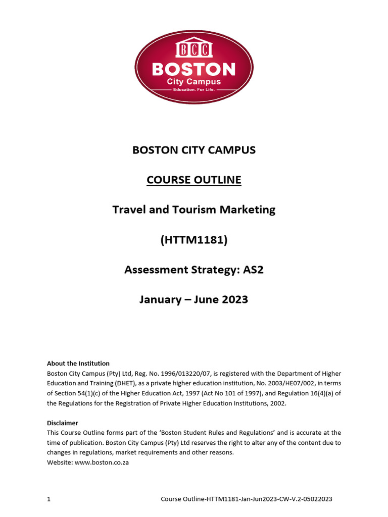 CourseOutline HTTM1181 Jan Jun2023 CW V.2 05022023 | PDF | Educational ...