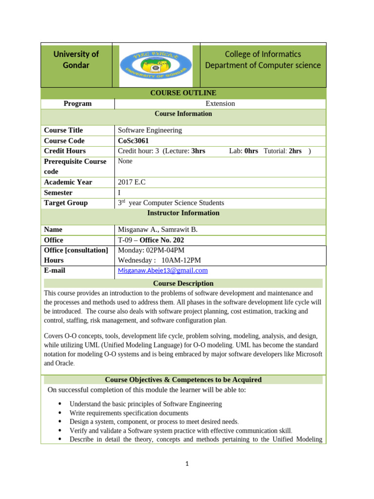 Software Engineering Courseoutline | PDF | Unified Modeling Language ...