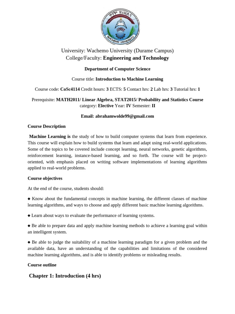 Courseoutline of ML 2018 | PDF | Machine Learning | Statistical ...