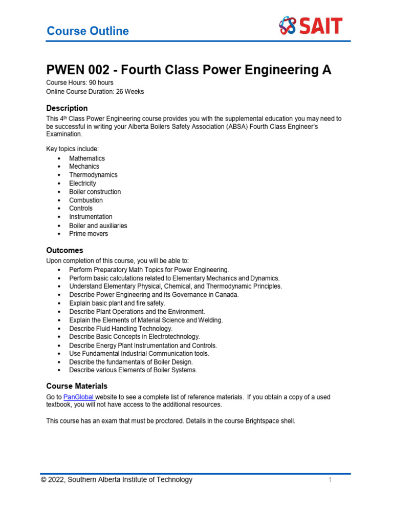 PWEN 002 Part a CourseOutline 2024-1 | PDF | Force | Boiler