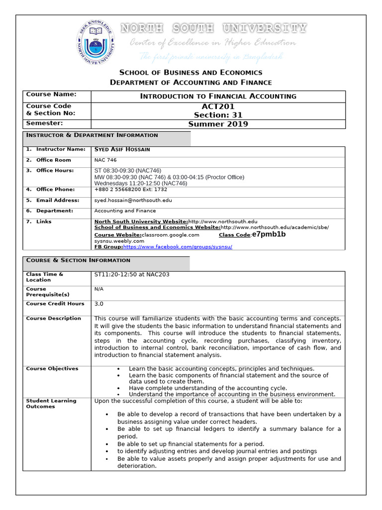 Act201 Courseoutline Su19 | PDF | Academic Dishonesty