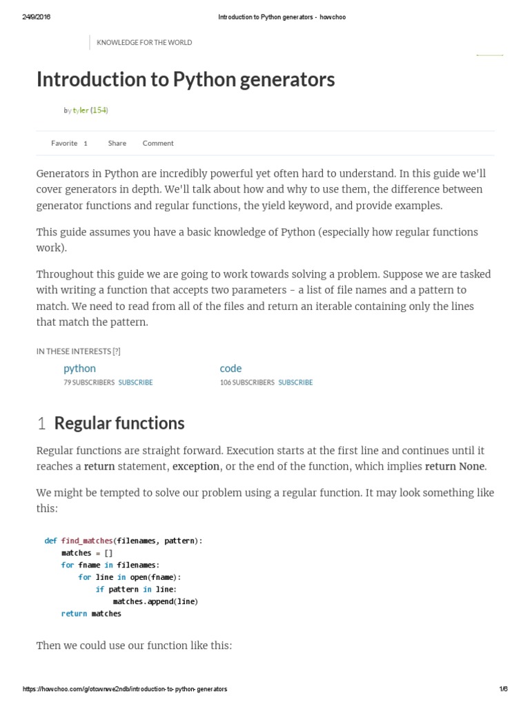 Introduction To Python Generators - Howchoo | PDF | Filename | Control Flow