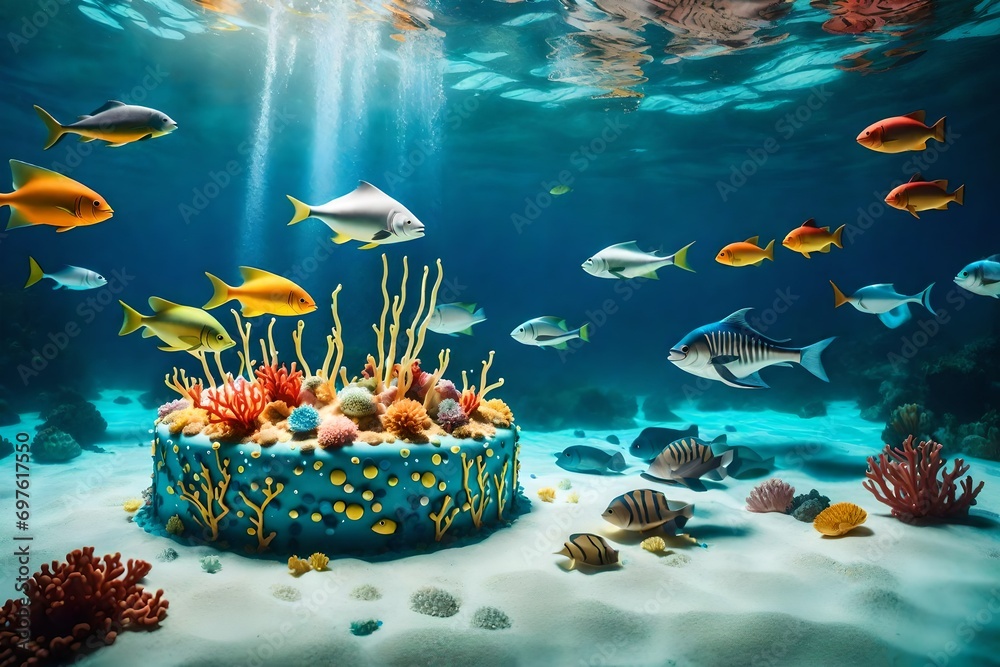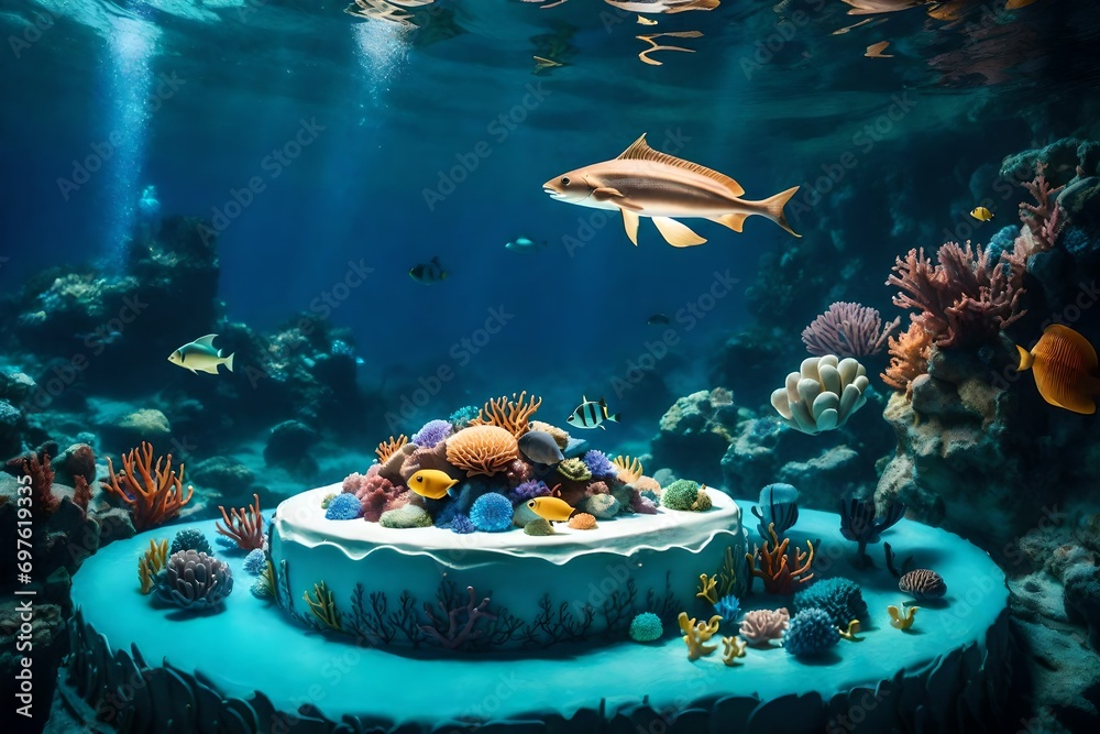 Premium Vector | The birthday cake was a magnificent underwater scene ...
