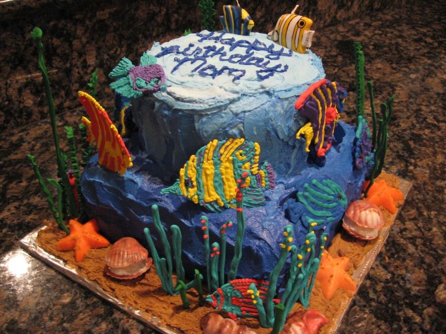Undersea Birthday Cake With Colorful Fish and Coral Reef Decorations ...