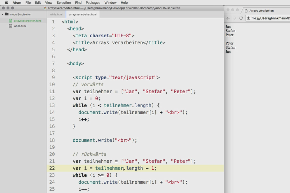 JS Loops - Kurs für Einsteiger: Teil 4 - JavaScript Arrays & Schleifen