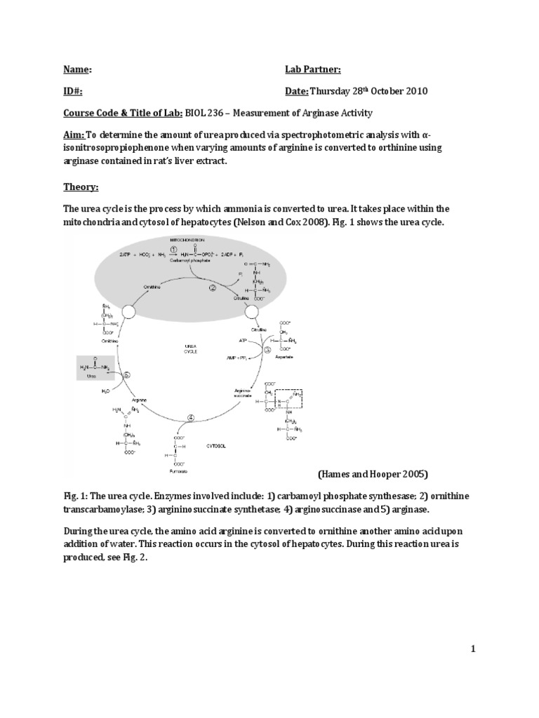 Determination of Serum Urea Levels: Biochemical Insights | Course Hero