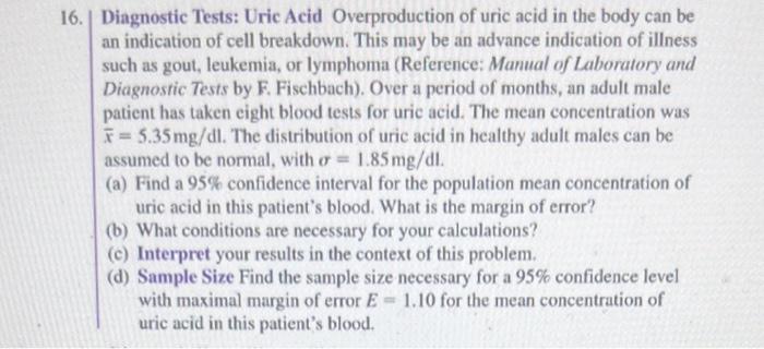 Solved Problem 01 Diagnostic Tests: Uric Acid [6 points) | Chegg.com