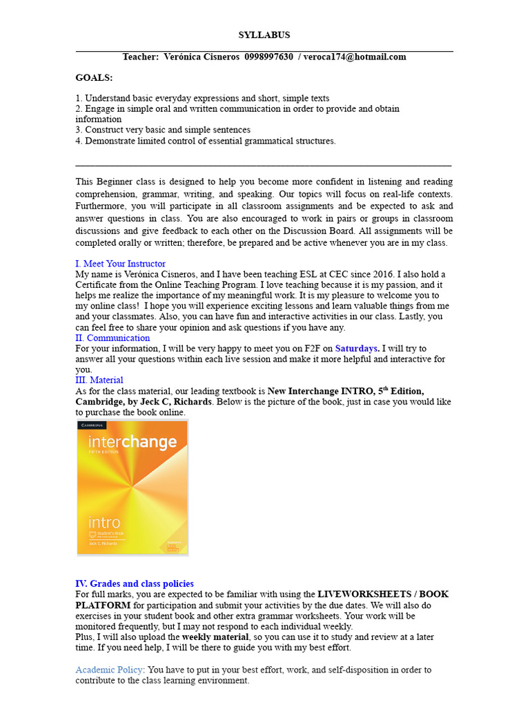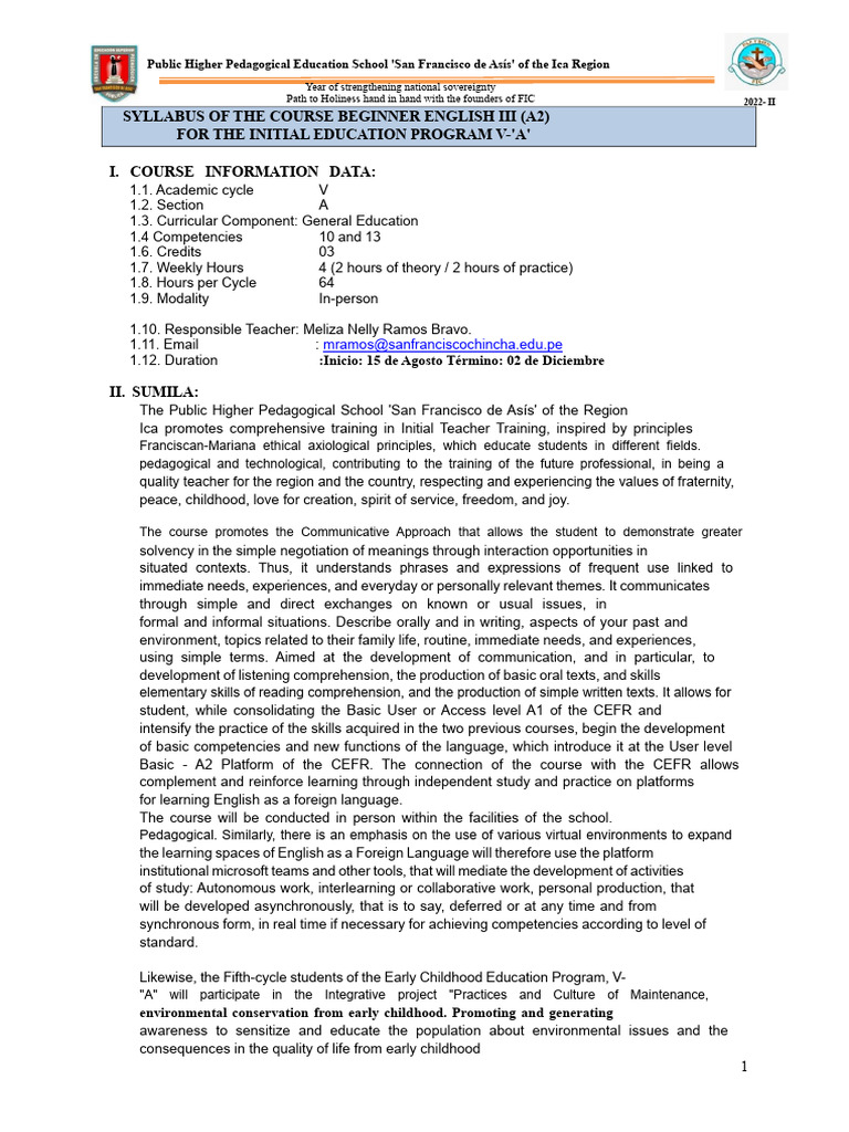 Syllabus Beginner English II - Initial V - A Completed | PDF | Empathy ...