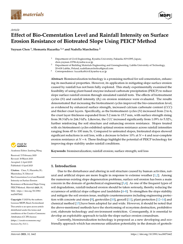 Effect of Bio-Cementation Level and Rainfall Inten | PDF | Earth Sciences