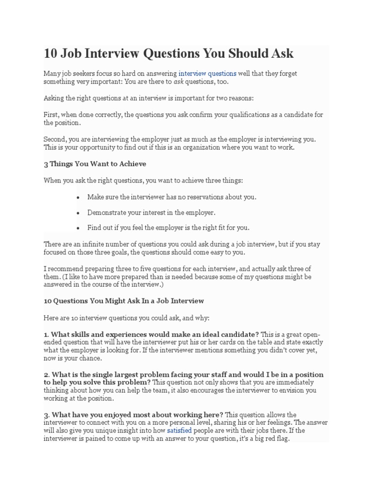 10 Job Interview Questions You Should Ask | PDF | Job Interview | Interview