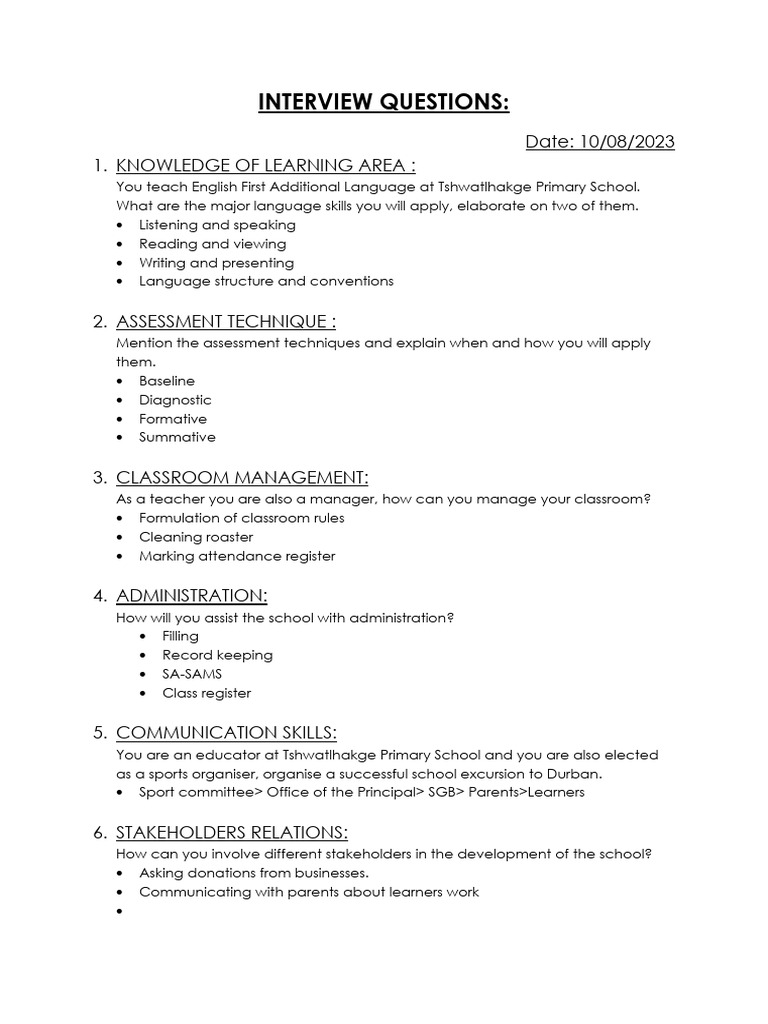Interview Questions Template Free