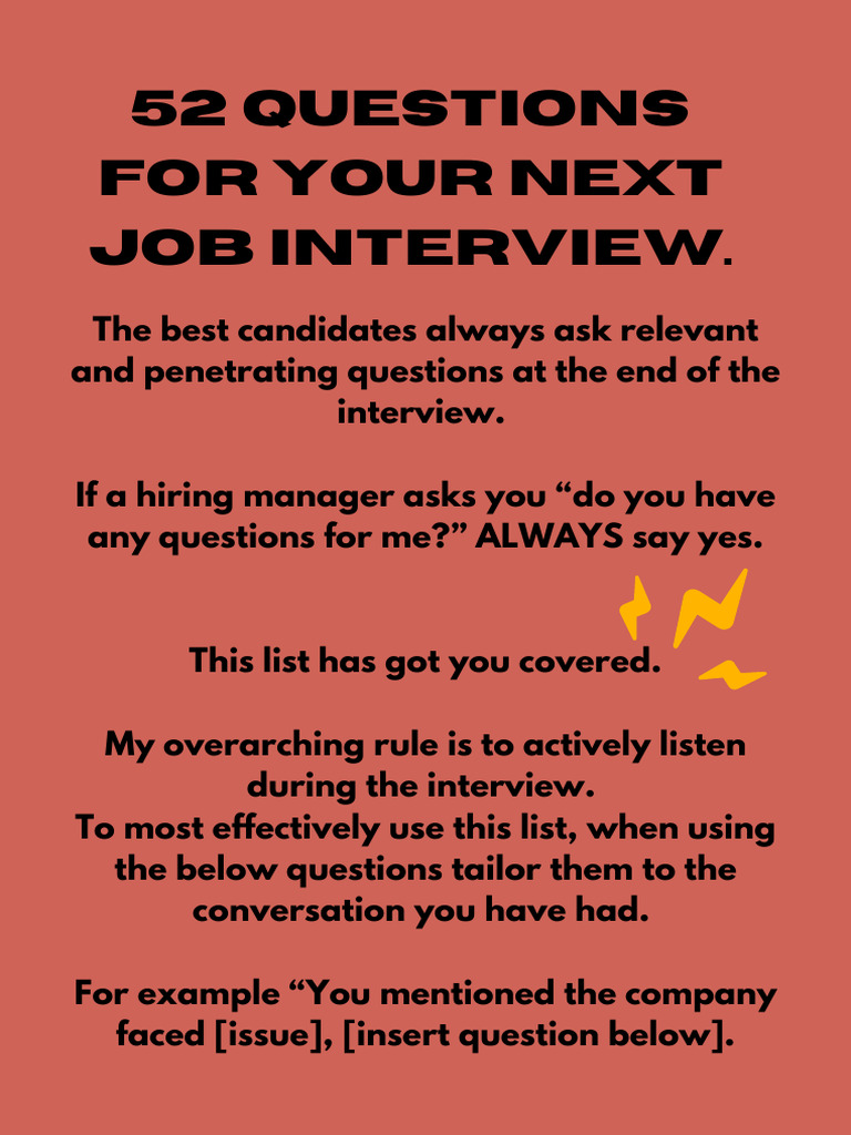 52 Questions For Your Next Job Interview | PDF | Job Interview