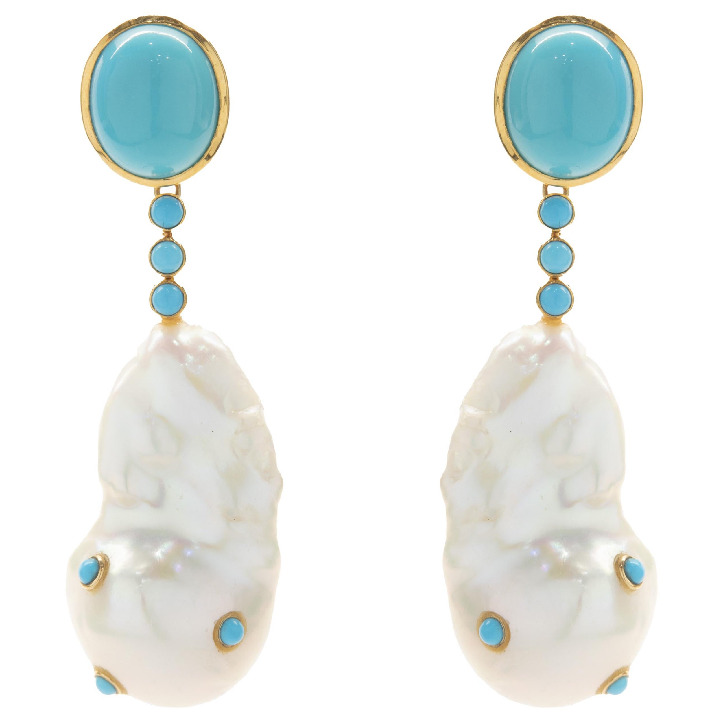 Orecchini pendenti in oro giallo 18 carati con turchese persiano e ...