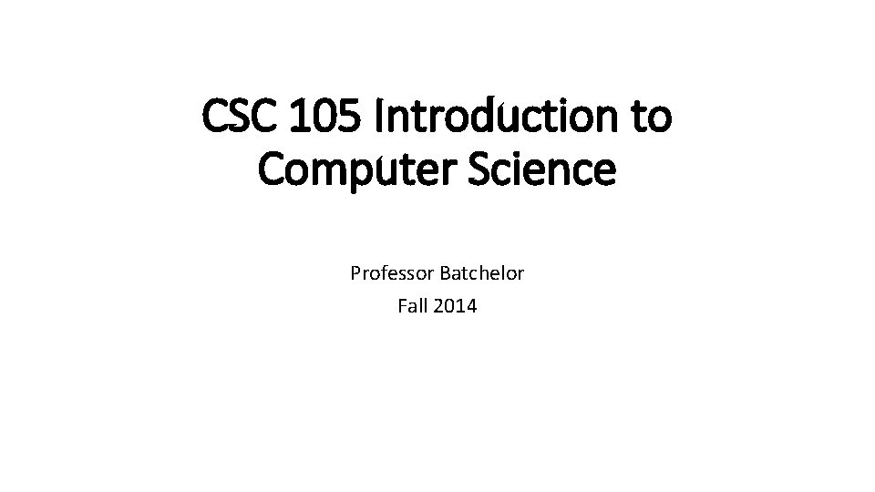 CSC 105 Introduction to Computer Science Professor Batchelor