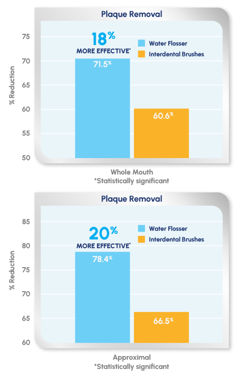 Waterpik® Water Flosser is more effective than interdental brushes