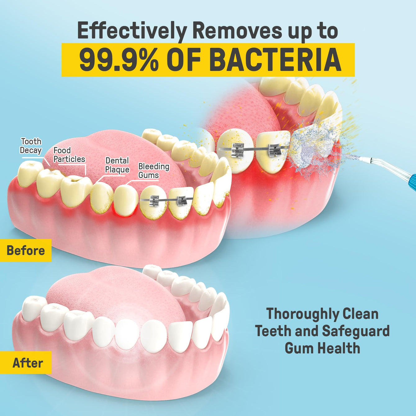 Based on this image's title: “Studies show water flossers outperform string floss in plaque removal”