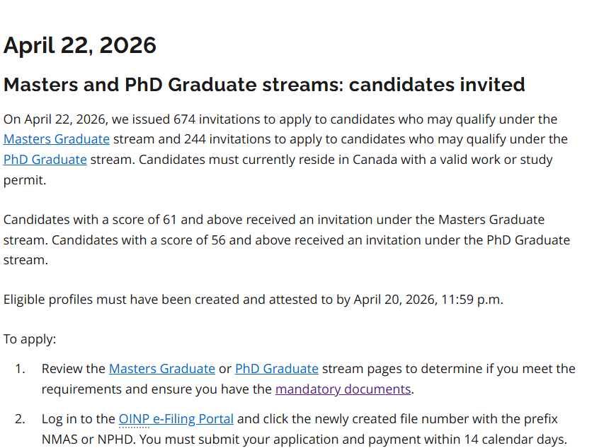 安大略省OINP项目4月22日新一轮抽签发放918份PR邀请函_硕士_博士_毕业生