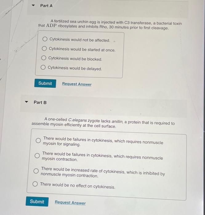 Solved Part A A fertilized sea urchin egg is injected with | Chegg.com
