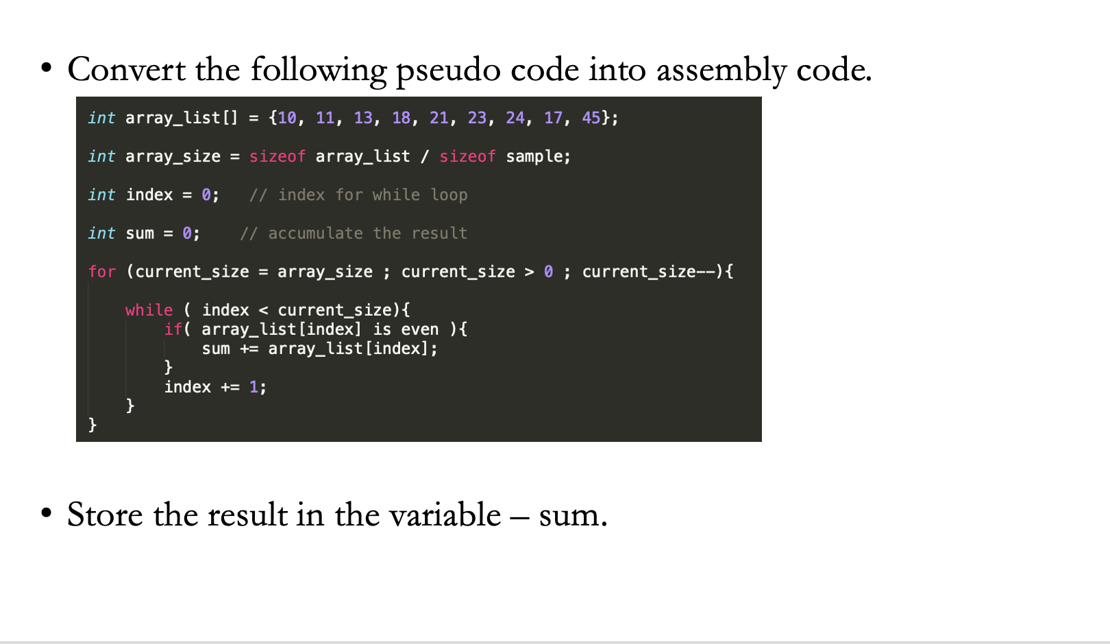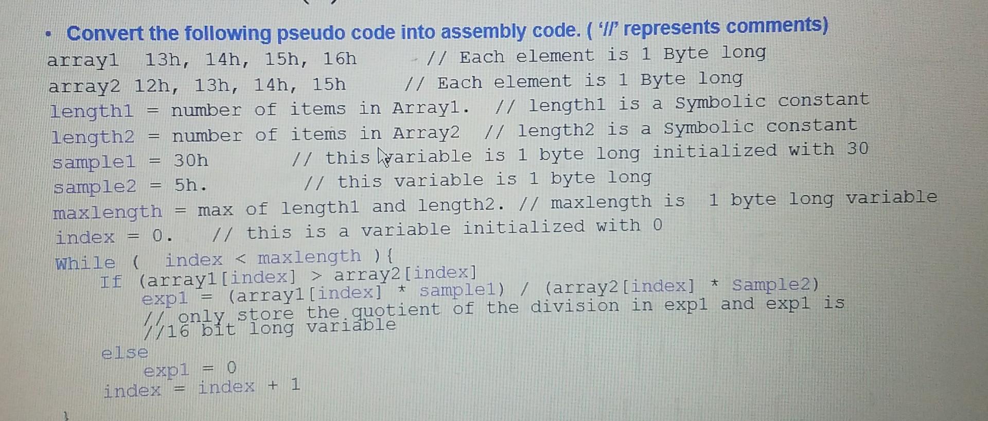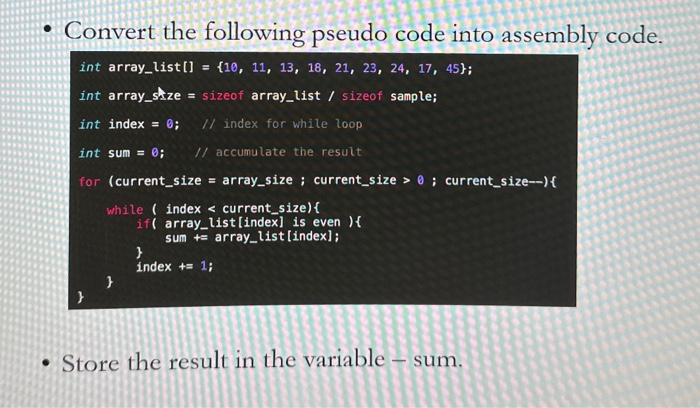 Solved Convert pseudocode given below into Assembly code. = | Chegg.com