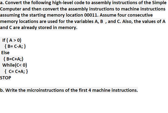 Solved a. Convert the following high-level code to assembly | Chegg.com