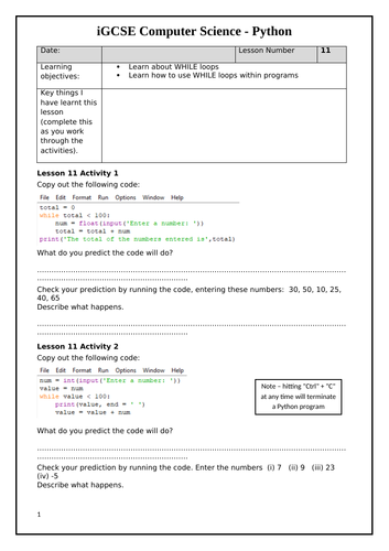 Python Challenges: More About While Loops | Teaching Resources