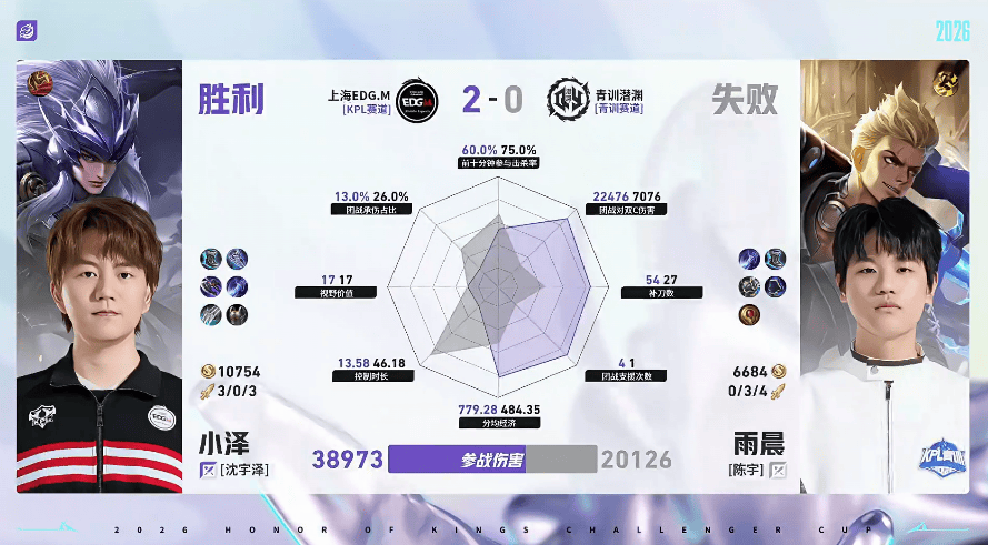 EDG.M/潜渊第二局数据对比:凌云戈娅再次多数据领先对位
