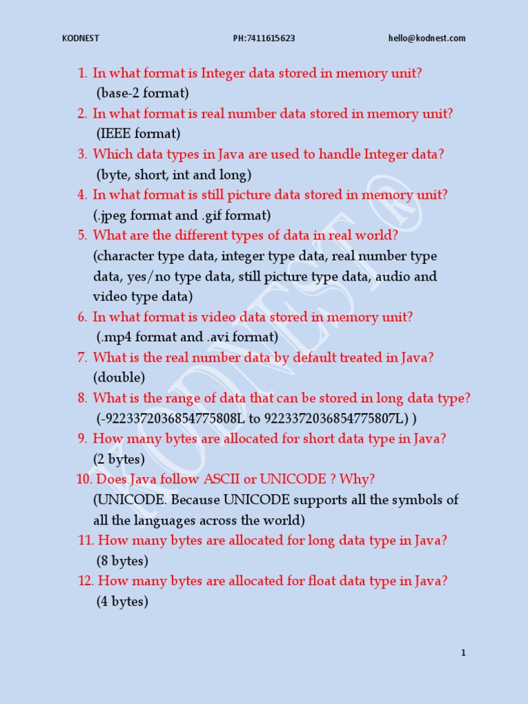 Data Types Interview Questions | PDF | Data Type | Variable (Computer ...